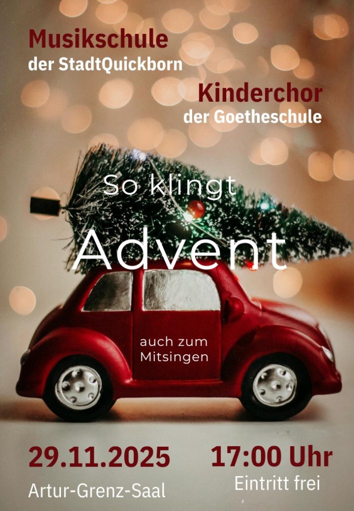 …dies zeigt die Musikschule am ersten Adventswochenende in der ganzen Bandbreite von klassischen Klängen bis hin zu weihnachtlichen Swing-Balladen in zwei Konzerten: Am Samstagnachmittag um 17.00 Uhr begrüßen das Schlagzeug-Ensemble „The Thunderbeats“, ein Trompetenensemble, der Kinderchor der Goetheschule und natürlich das Musikschulorchester mit eigenen Solisten die Adventszeit musikalisch. Die Geschichte der Lucia sowie eine vom Kinderchor aufgeführte Kantate sind besondere Programmpunkte im ersten Teil.